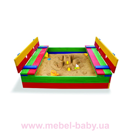 Песочница изготовлена из прочной сосны и отличается долгим сроком службы благодаря пропитке антисептиком. Несмотря на легкость, конструкция сможет выдержать большой вес. Она оснащена двумя удобными лавочками, поэтому взрослые смогут не только присмотреть за малышами, но и поучаствовать вместе с ними в игре. Вес конструкции всего 40 килограммов.