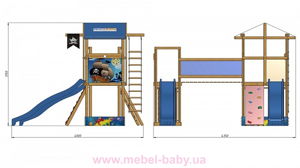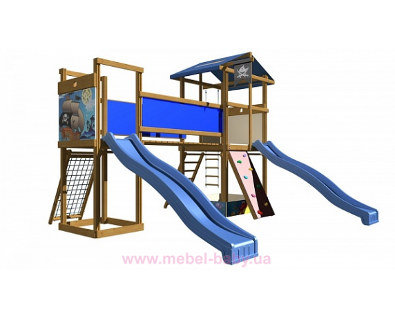 для детей разного возраста, предназначенный для установки на загородном участке. Уголок не требует специальных креплений, и в комплектацию входят сразу две горки, стенка, веревочная лестница и сетка для лазания, песочница и домик для игр.
