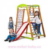 выгодна и доступна. Выполнен он из натурального материала. Здесь есть все необходимое, чтобы малыш получал полноценную физическую нагрузку: спортивная стенка, рукоход, кольца, гладиаторская сетка. Для того, чтобы ребенок отдохнул после подвижных игр в комплекте имеется столик. А такое сооружение как горка не оставит ни одного малыша равнодушным.