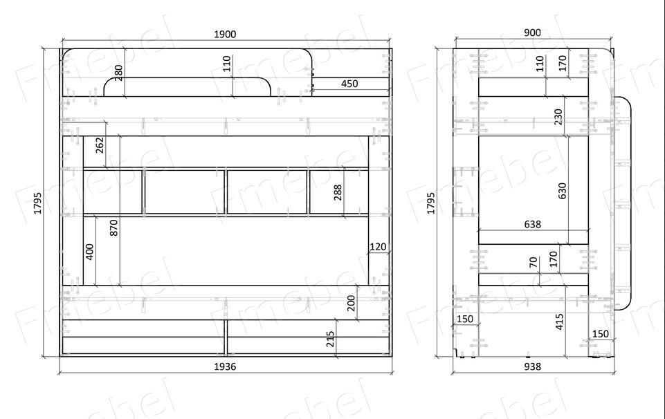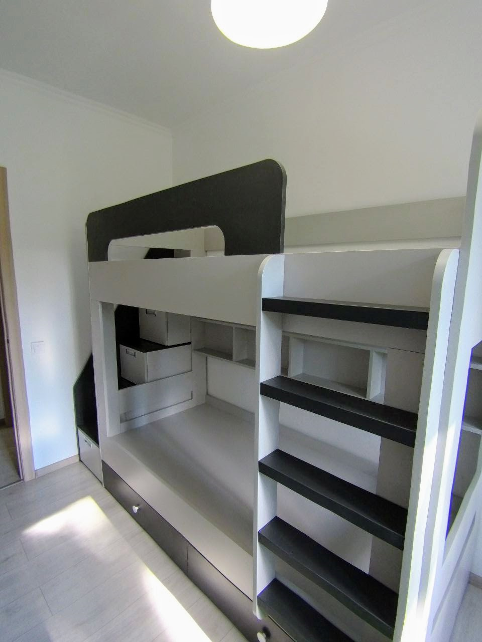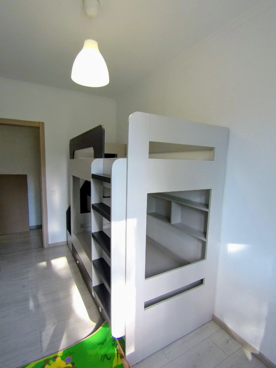 2. Стандарт: ДСП 18 мм, кромка 2 и 1 мм, телескопические направляющие, классические петли, присутствуют декоративные вырезы, скругления в столах, полочках, бортах, ступеньках. Мебель выглядит как на фото и является более интересной и комфортной. Ящики закрываются более тихо и плавно. Используется высококачественная фурнитура ТМ Muller, которая имеет гарантию 10 лет. Рекомендованная нагрузка на спальное место до 120 кг.