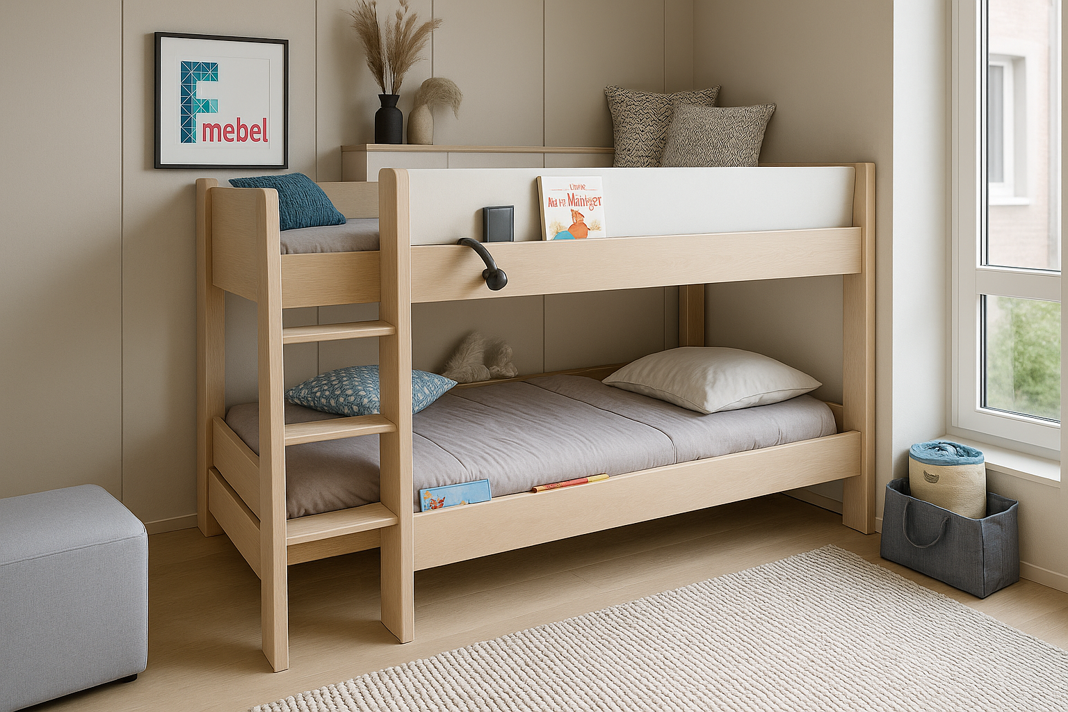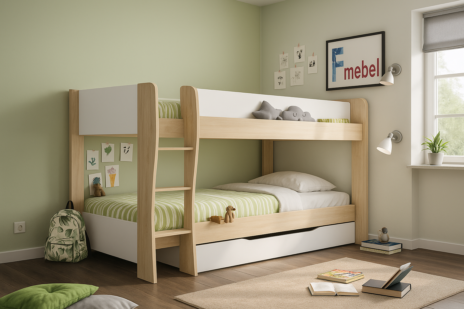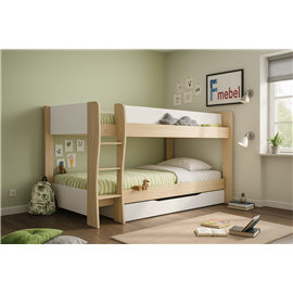 2. Стандарт: ДСП 18 мм, кромка 2 и 1 мм, телескопические направляющие, классические петли, присутствуют декоративные вырезы, скругления в столах, полочках, бортах, ступеньках. Мебель выглядит как на фото и является более интересной и комфортной. Ящики закрываются более тихо и плавно. Используется высококачественная фурнитура ТМ Muller, которая имеет гарантию 10 лет. Рекомендованная нагрузка на спальное место до 120 кг.