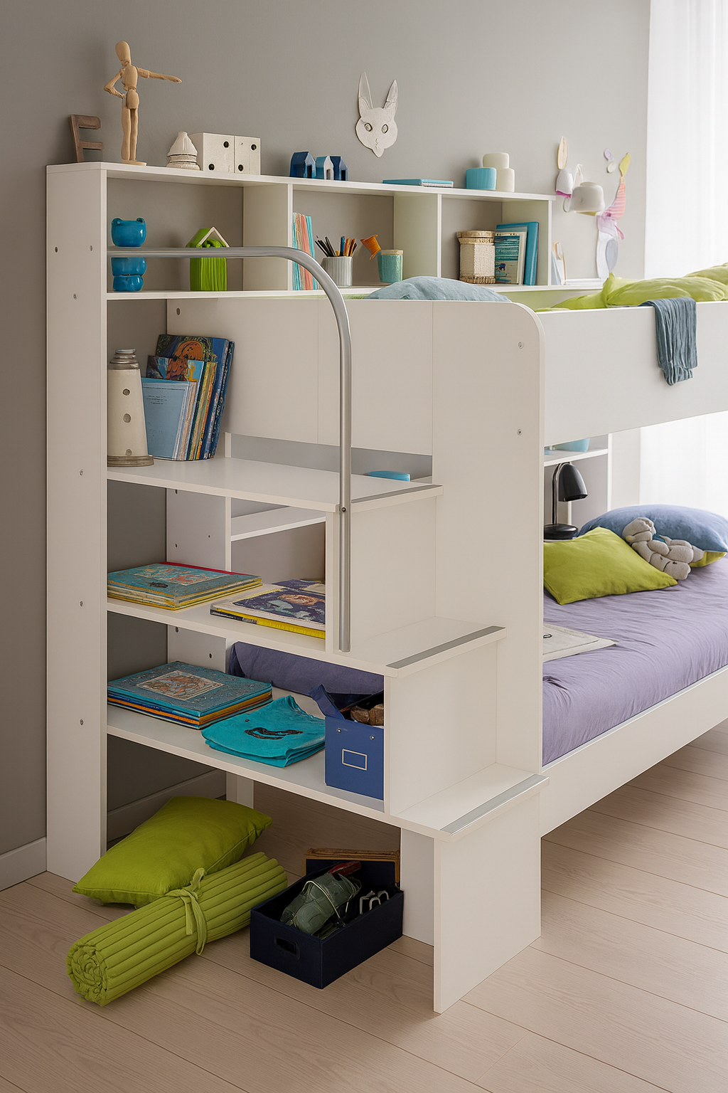 2. Стандарт: ДСП 18 мм, кромка 2 и 1 мм, телескопические направляющие, классические петли, присутствуют декоративные вырезы, скругления в столах, полочках, бортах, ступеньках. Мебель выглядит как на фото и является более интересной и комфортной. Ящики закрываются более тихо и плавно. Используется высококачественная фурнитура ТМ Muller, которая имеет гарантию 10 лет. Рекомендованная нагрузка на спальное место до 120 кг.