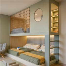 2. Люкс: ДСП 18 мм, кромка 2 и 1 мм, телескопические направляющие с доводчиком, петли с доводчиком, присутствуют декоративные вырезы, скругления в столах, полочках, бортах, ступеньках. Мебель не только выглядит и является массивной и презентабельной, но также она становится максимально комфортной в использовании — ящики закрываются почти сами - их нужно только слегка толкнуть, двери не хлопают при закрывании. Используется высококачественная фурнитура ТМ Muller, которая имеет гарантию 10 лет. Рекомендованная нагрузка на спальное место до 120 кг.