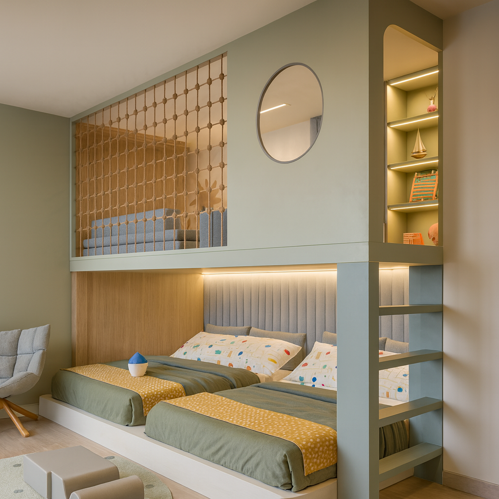 Для комфорта в кровать можно добавить мягкие панели на липучках, а так же мягкую обивку для круглой ниши в шкафу.