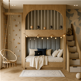 Для комфорта в кровать можно добавить мягкие панели на липучках, а так же мягкую обивку для круглой ниши в шкафу.