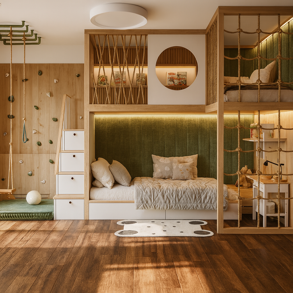 Для комфорта в кровать можно добавить мягкие панели на липучках, а так же мягкую обивку для круглой ниши в шкафу.