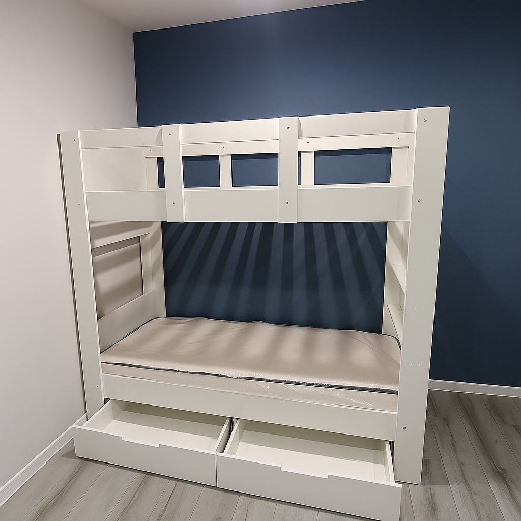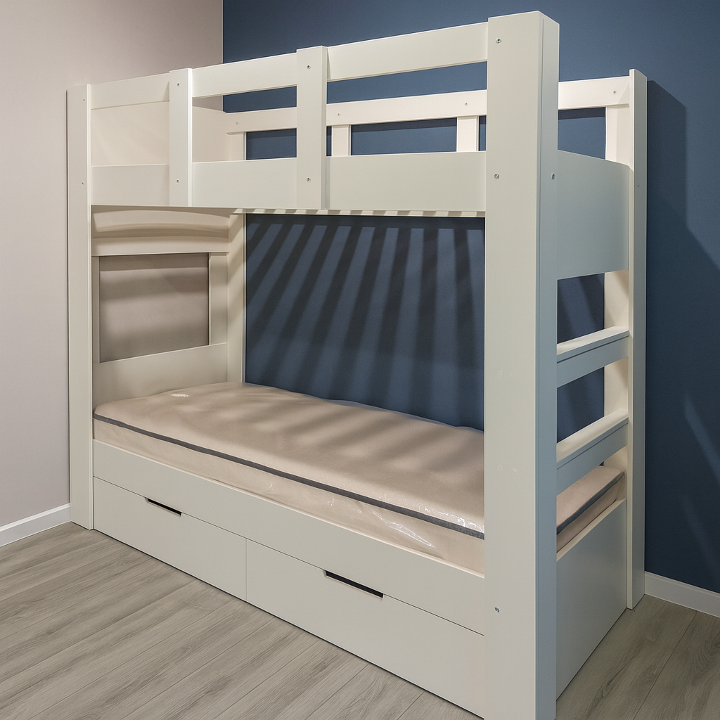 Двухъярусная кровать-трансформер состоит из двух полноценных односпальных кроватей, которые вы можете использовать по своему усмотрению: как отдельные кровати, или как одну двухъярусную.