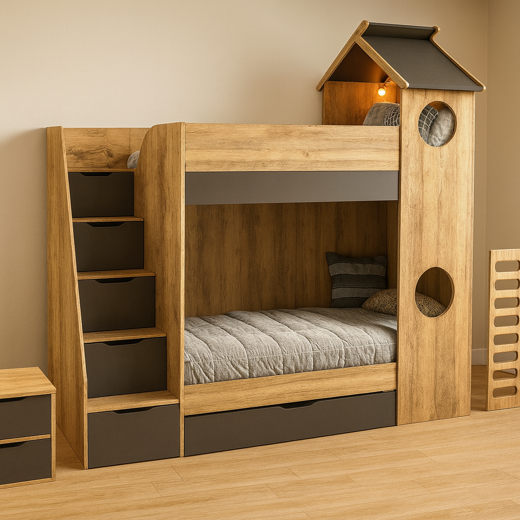 Нижнее спальное место легко трансформируется из кроватки для новорожденных в подростковую кровать.