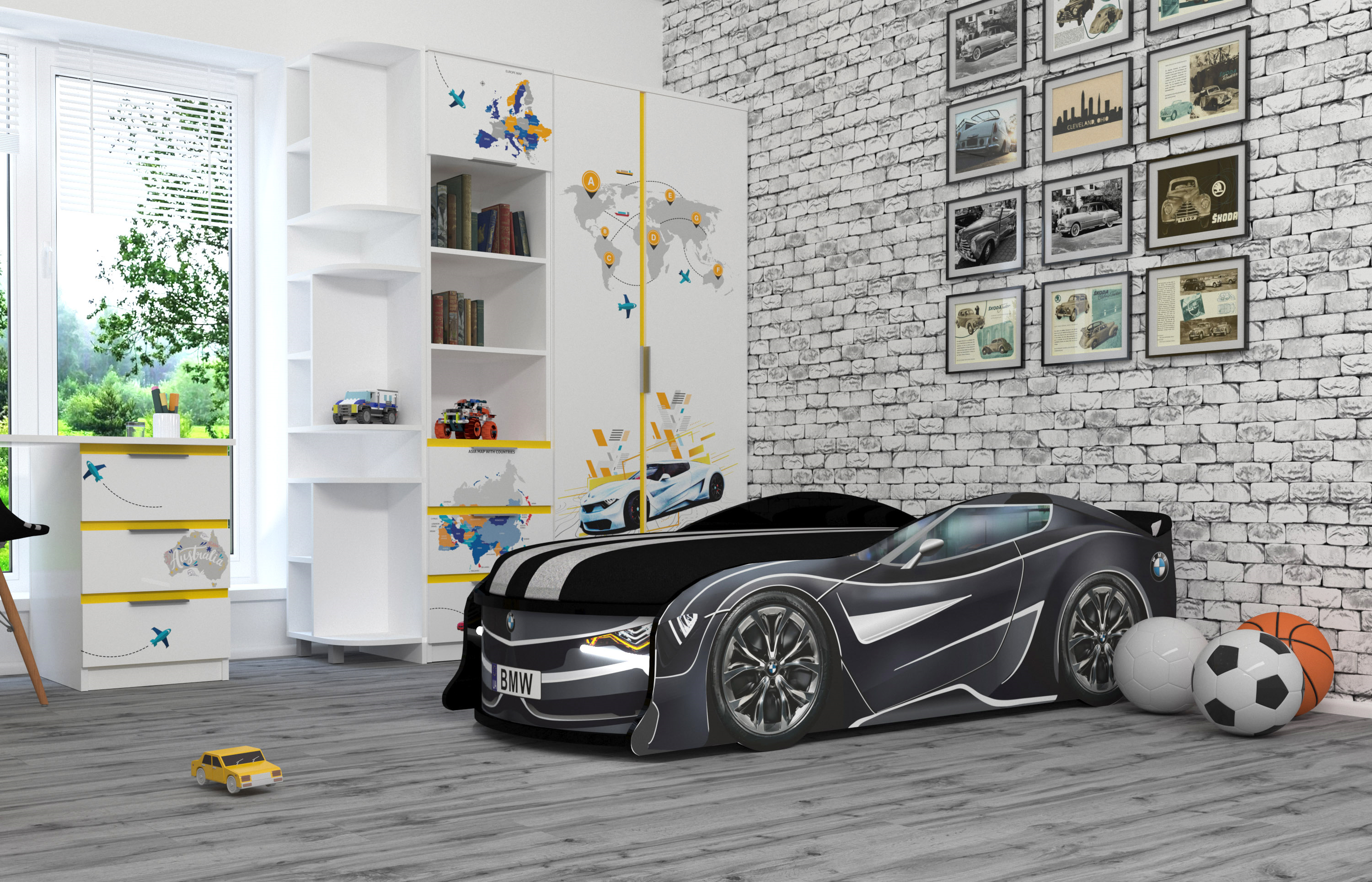 1 x Кровать-машина BMW 70х150 с подъемным механизмом с матрасом и спойлером MebelKon