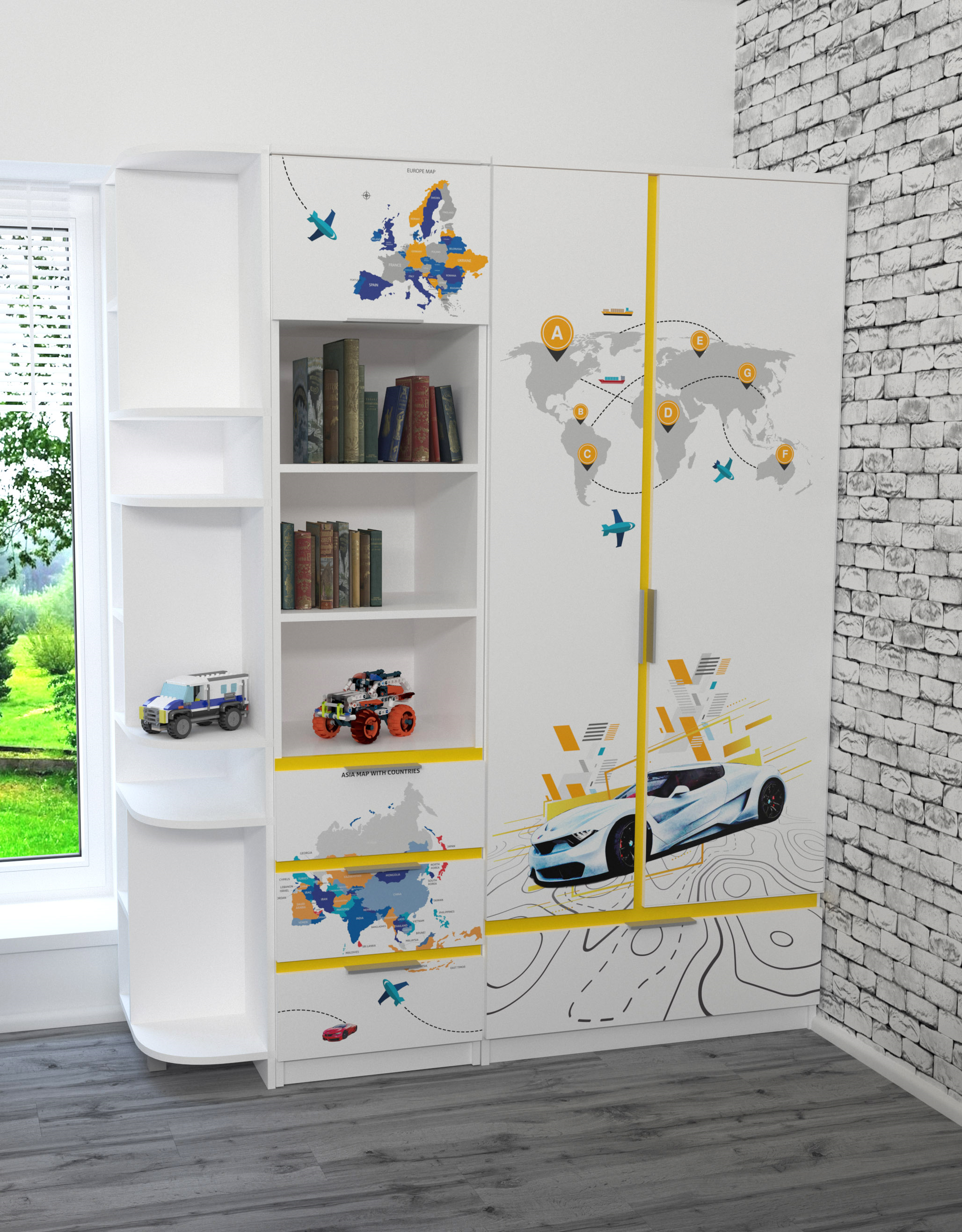 Модули легко миксуются между собой, помогая эффектно обустроить любое пространство. При производстве мебели мы используем долговечную фурнитуру – защелки, петли, направляющие для сдвижных дверок и выдвижных ящиков. Изображения нанесены при помощи UF-печати, которая не стирается и не портится от воды.
