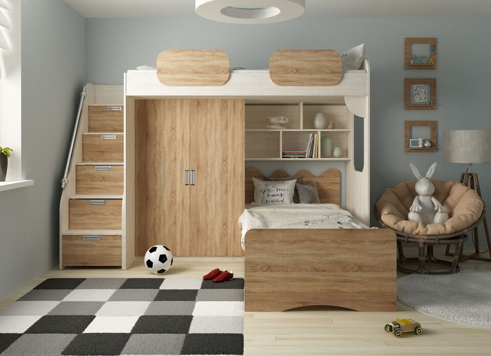 Кровать-чердак двухместная со шкафом Риалто Fmebel