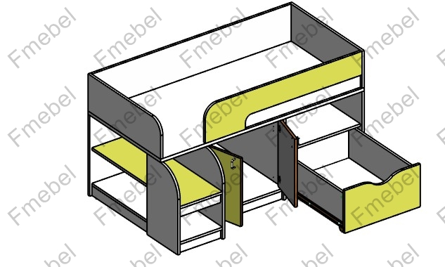 2. Стандарт: ДСП 18 мм, кромка 2 и 1 мм, телескопические направляющие, классические петли, присутствуют декоративные вырезы, скругления в столах, полочках, бортах, ступеньках. Мебель выглядит как на фото и является более интересной и комфортной. Ящики закрываются более тихо и плавно. Используется высококачественная фурнитура ТМ Muller, которая имеет гарантию 10 лет. Рекомендованная нагрузка на спальное место до 120 кг.