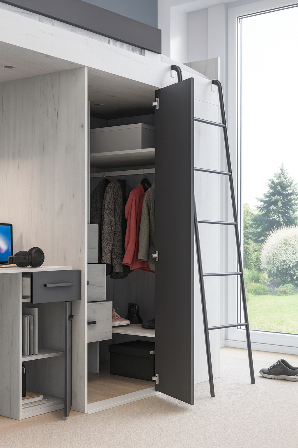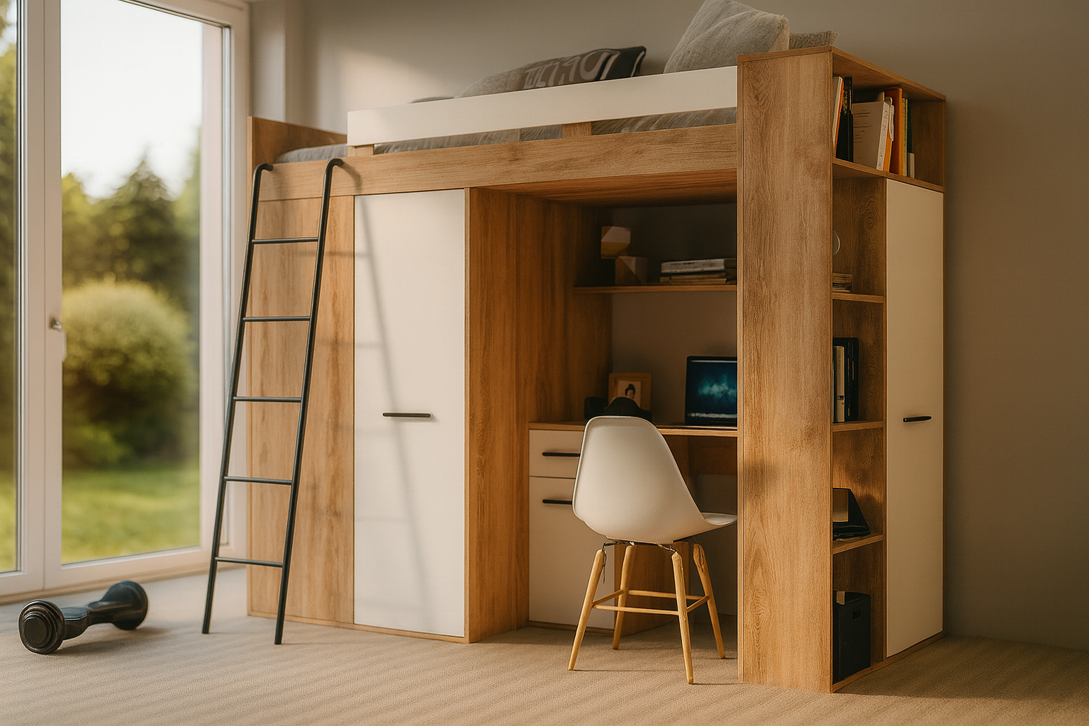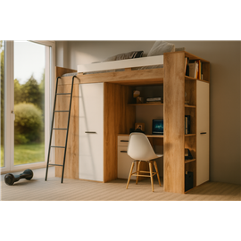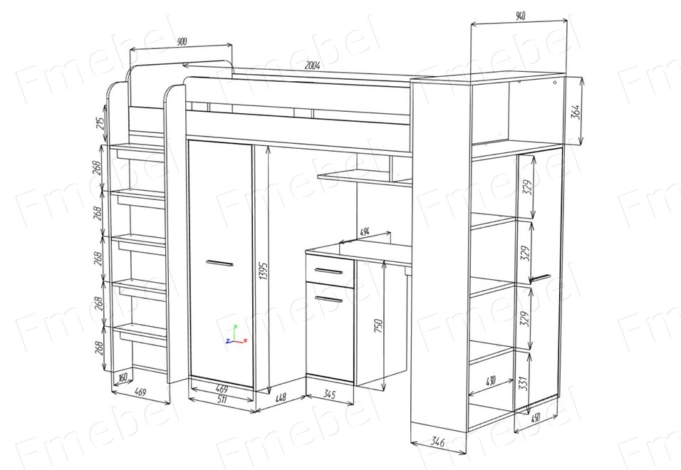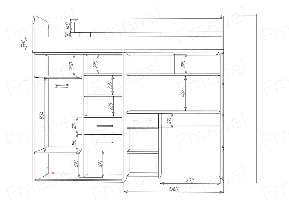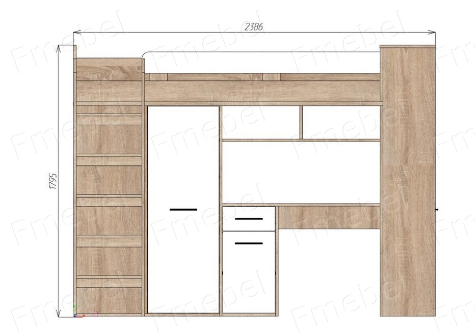Кровать-чердак со столом и шкафом Канкун Fmebel 90x200