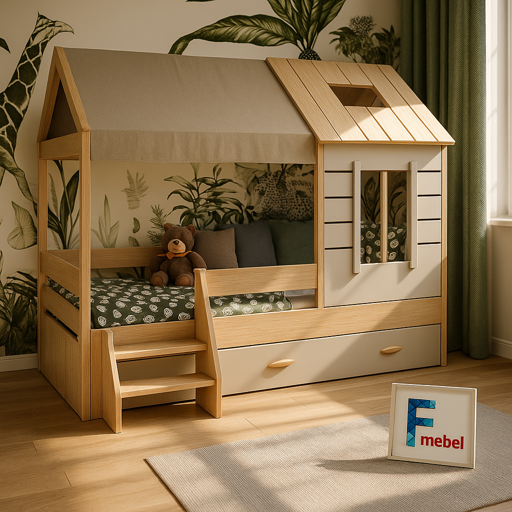 2. Стандарт: ДСП 18 мм, кромка 2 и 1 мм, телескопические направляющие, классические петли, присутствуют декоративные вырезы, скругления в столах, полочках, бортах, ступеньках. Мебель выглядит как на фото и является более интересной и комфортной. Ящики закрываются более тихо и плавно. Используется высококачественная фурнитура ТМ Muller, которая имеет гарантию 10 лет. Рекомендованная нагрузка на спальное место до 120 кг.