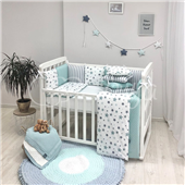ΠΠΎΠ΄ΠΎΠ΄Π΅ΡΠ»ΡΠ½ΠΈΠΊ, Π½Π°Π²ΠΎΠ»ΠΎΡΠΊΠ°, ΠΏΡΠΎΡΡΡΠ½Ρ ΠΈ Β ΡΡΠ΅ΠΌΠ½ΡΠ΅ ΡΠ΅Ρ Π»Ρ Π½Π° ΠΌΠΎΠ»Π½ΠΈΠΈ, ΠΈΠ· Π½Π°ΡΡΡΠ°Π»ΡΠ½ΠΎΠΉ Ρ Π»ΠΎΠΏΡΠ°ΡΠΎΠ±ΡΠΌΠ°ΠΆΠ½ΠΎΠΉ ΡΠΊΠ°Π½ΠΈ. ΠΡΠΎΡΡΡΠ½ΠΊΠ° ΠΈΠ΄Π΅Π°Π»ΡΠ½ΠΎ ΠΏΠΎΠ²ΡΠΎΡΡΠ΅Ρ ΡΠΎΡΠΌΡ ΠΌΠ°ΡΡΠ°ΡΠ° Π² ΠΊΡΠΎΠ²Π°ΡΠΊΠ΅. Π Π΅Π±Π΅Π½ΠΎΠΊ Π±ΡΠ΄Π΅Ρ ΡΡΠ²ΡΡΠ²ΠΎΠ²Π°ΡΡ ΡΠ΅Π±Ρ ΡΠ²ΠΎΠ±ΠΎΠ΄Π½ΠΎ, Π° ΠΌΠ°ΠΌΠ΅ ΠΌΠΎΠΆΠ½ΠΎ Π±ΡΡΡ ΡΠΏΠΎΠΊΠΎΠΉΠ½ΠΎΠΉ, ΡΡΠΎ ΠΏΡΠΎΡΡΡΠ½ΠΊΠ° Π·Π°ΡΠΈΠΊΡΠΈΡΠΎΠ²Π°Π½Π° ΠΈ Π½ΠΈΠ³Π΄Π΅ Π½Π΅ ΡΠΎΠΌΠ½Π΅ΡΡΡ. Π‘ΡΠ΅ΠΌΠ½ΡΠ΅ ΡΠ΅Ρ Π»Ρ ΠΈΠΌΠ΅ΡΡ ΠΏΠ΅ΡΠ΅Π»ΡΠΊΠΈ ΠΈ ΡΠΏΠ΅ΡΠΈΠ°Π»ΡΠ½ΡΠ΅ Π·Π°Π²ΡΠ·ΠΎΡΠΊΠΈ Π΄Π»Ρ Π½Π°Π΄Π΅ΠΆΠ½ΠΎΠ³ΠΎ ΠΊΡΠ΅ΠΏΠ»Π΅Π½ΠΈΡ ΠΊ ΠΊΡΠΎΠ²Π°ΡΠΊΠ΅, ΡΡΠΎ Π³Π°ΡΠ°Π½ΡΠΈΡΡΠ΅Ρ Π±Π΅Π·ΠΎΠΏΠ°ΡΠ½ΠΎΡΡΡ ΡΠ΅Π±Π΅Π½ΠΊΠ° ΠΈ Π°ΠΊΠΊΡΡΠ°ΡΠ½ΡΠΉ Π²Π½Π΅ΡΠ½ΠΈΠΉ Π²ΠΈΠ΄. Π’Π°ΠΊΠ°Ρ Π·Π°ΡΠΈΡΠ° ΠΎΠ±Π΅ΡΠΏΠ΅ΡΠΈΠ²Π°Π΅Ρ ΠΎΡΠ»ΠΈΡΠ½ΡΡ ΡΠΈΡΠΊΡΠ»ΡΡΠΈΡ Π²ΠΎΠ·Π΄ΡΡ Π° Π² ΠΊΡΠΎΠ²Π°ΡΠΊΠ΅ ΠΈ ΠΎΠ±Π΅ΡΠ΅Π³Π°Π΅Ρ ΠΌΠ°Π»ΡΡΠ° ΠΎΡ ΡΠΊΠ²ΠΎΠ·Π½ΡΠΊΠΎΠ² ΠΈ Π½Π΅ΠΆΠ΅Π»Π°ΡΠ΅Π»ΡΠ½ΡΡ ΡΡΠΈΠ±ΠΎΠ². ΠΠ°Π»ΠΈΡΠΈΠ΅ ΠΌΠΎΠ»Π½ΠΈΠΈ Π½Π° Ρ Π»ΠΎΠΏΠΊΠΎΠ²ΡΡ ΡΠ΅Ρ Π»Π°Ρ Π±ΠΎΡΡΠΈΠΊΠΎΠ², ΠΏΠΎΠ·Π²ΠΎΠ»ΡΠ΅Ρ ΡΡΠΈΡΠ°ΡΡ ΠΎΡΠ΄Π΅Π»ΡΠ½ΠΎ ΡΠ΅Ρ Π»Ρ ΠΈ Π½Π°ΠΏΠΎΠ»Π½ΠΈΡΠ΅Π»Ρ.