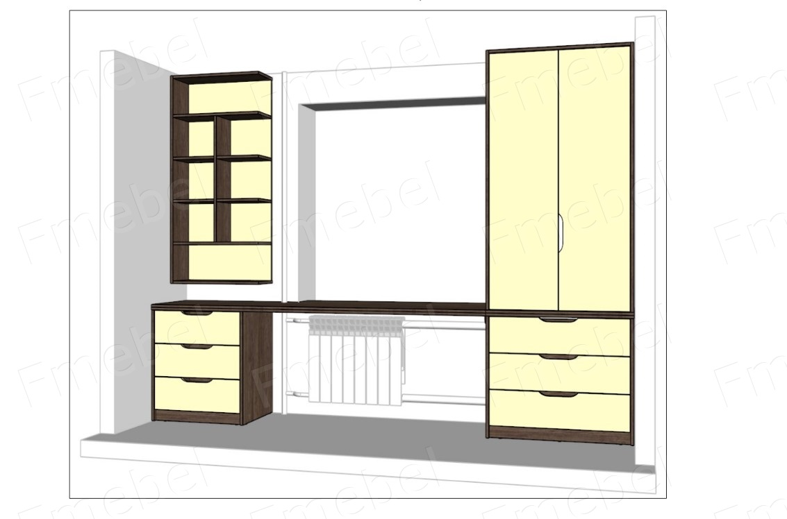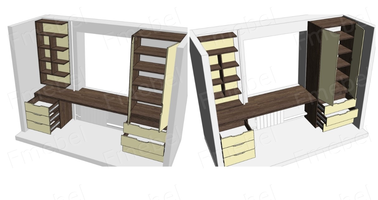 1. Базовый: ДСП 18 мм, кромка 0,6-0,8 мм, невидимые и стыковочные торцы не покрываются кромкой, телескопические направляющие, классические петли. В шкафах по умолчанию размещена только штанга для плечиков, если вам нужны полочки или ящики, они заказываются отдельной позицией. (См. доп. товары).